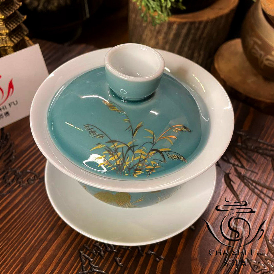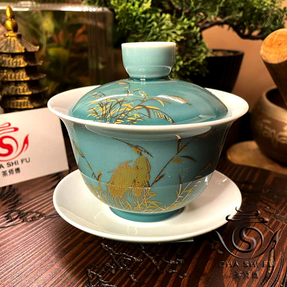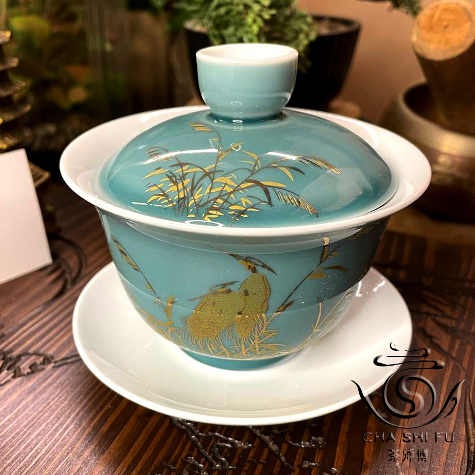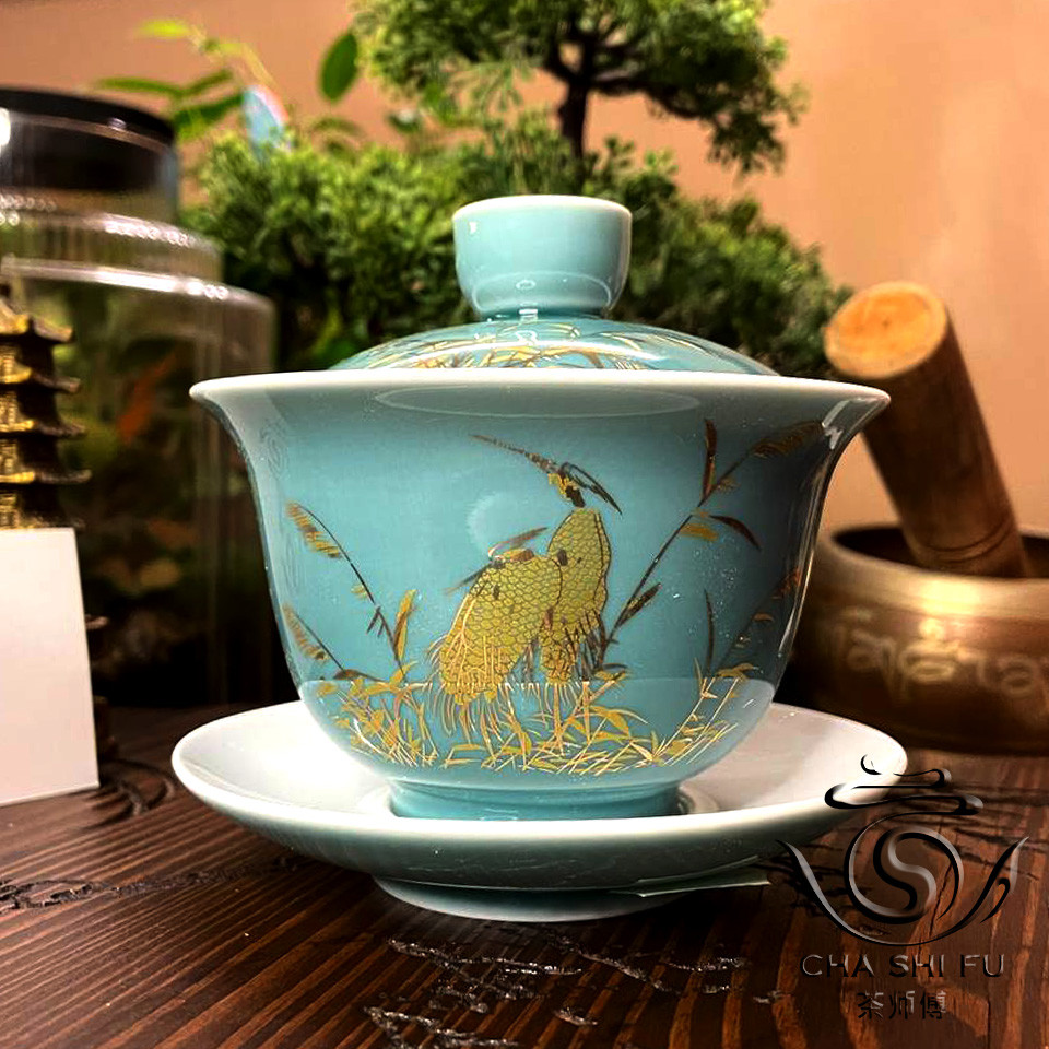 Наша Гайвань, втілення вишуканості, виготовлена з високоякісної порцеляни, що має витончену майстерність і довговічність. Її глазур небесного кольору надасть вашому чаюванню неймовірну гармонію та пишність. Візерунок пари журавлів, виконаний золотом, надає цій Гайвані особливу чарівність і символізує достаток, радість та довге життя.