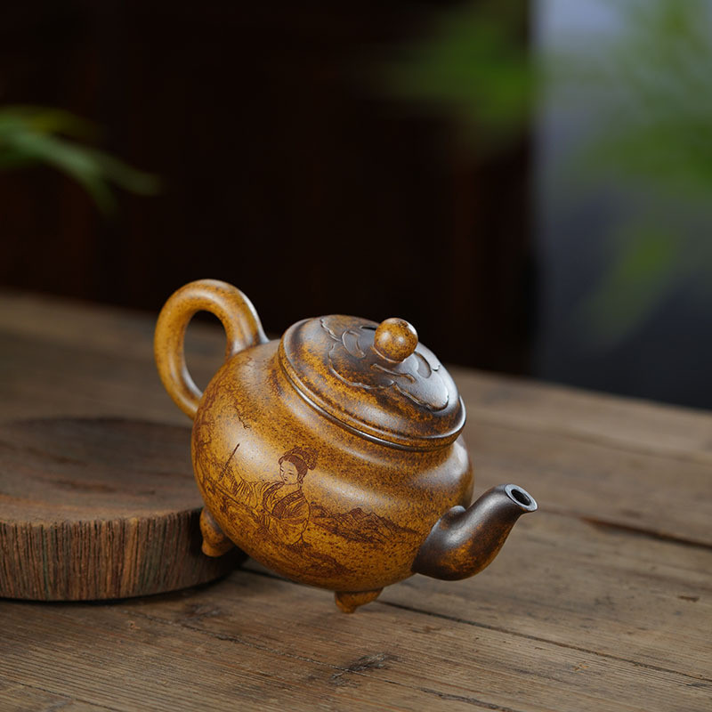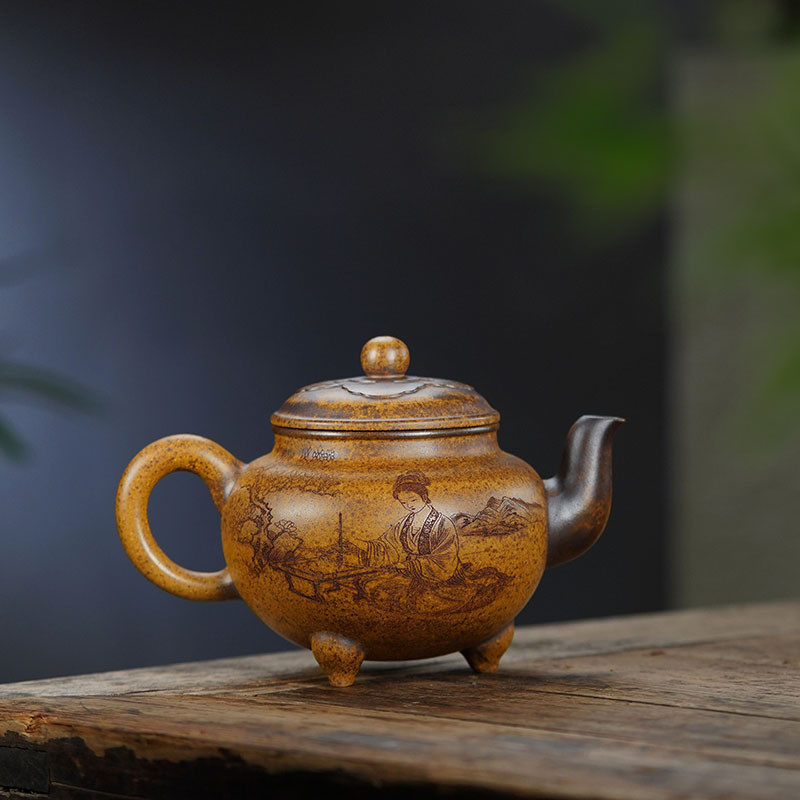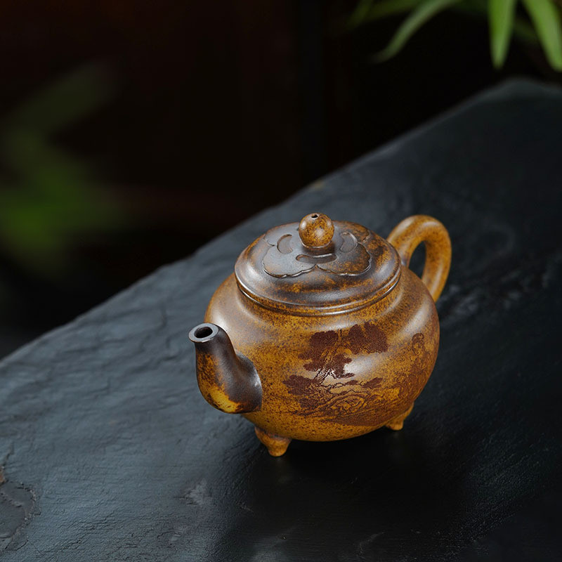 «Пейзаж» — це місткий ісинський чайник з глини з природною текстурою, що нагадує старовинний камінь, вкритий піщаним тоном. Поверхня поєднує теплі золотисто-коричневі переливи та темні включення, створюючи ефект благородного віку. Об’єм 500 мл робить його комфортним для сімейних сесій та чаювання з друзями.