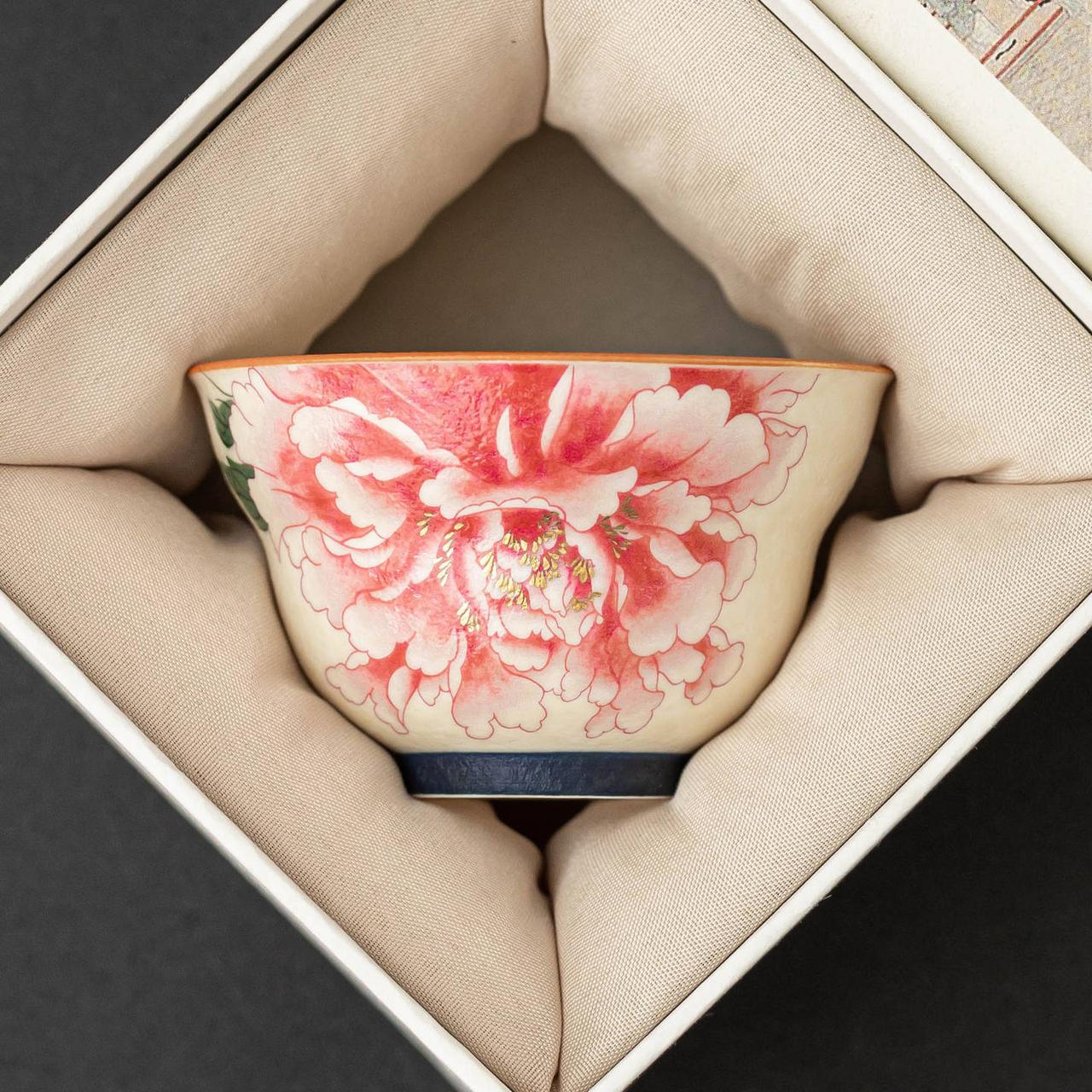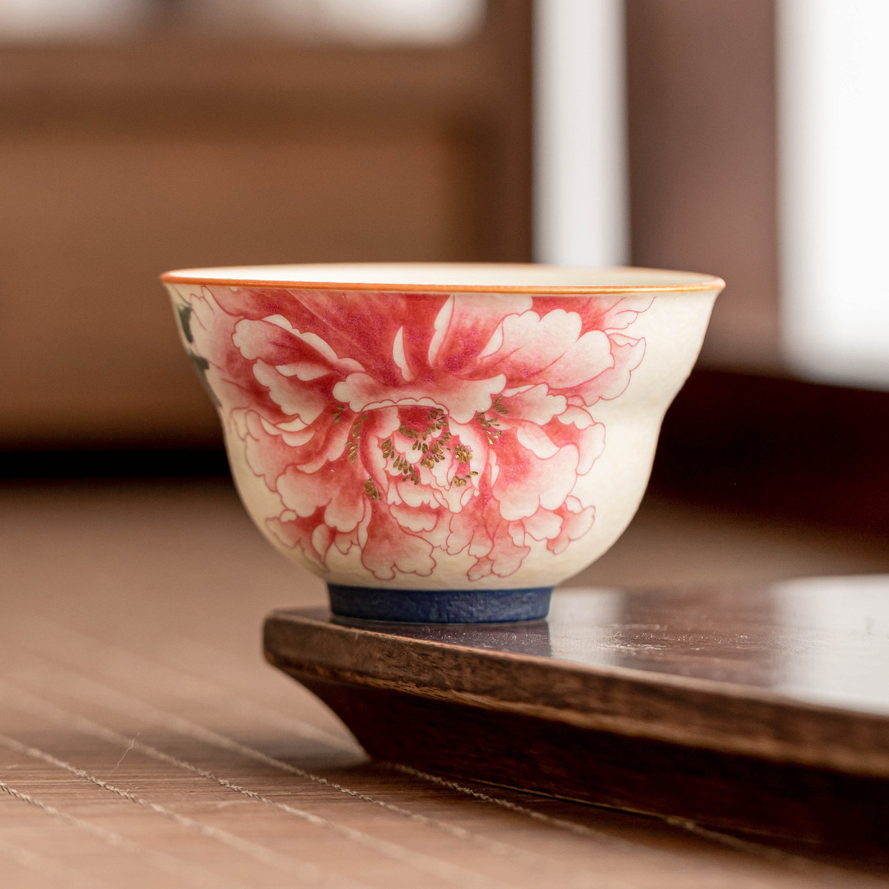 Піала «Квітка Чаю» виготовлена з якісної кераміки та прикрашена витонченим принтом у вигляді розкішної півонії. М’які рожево-білі відтінки передають відчуття ніжності та чистоти, створюючи теплу атмосферу під час кожного проливу.