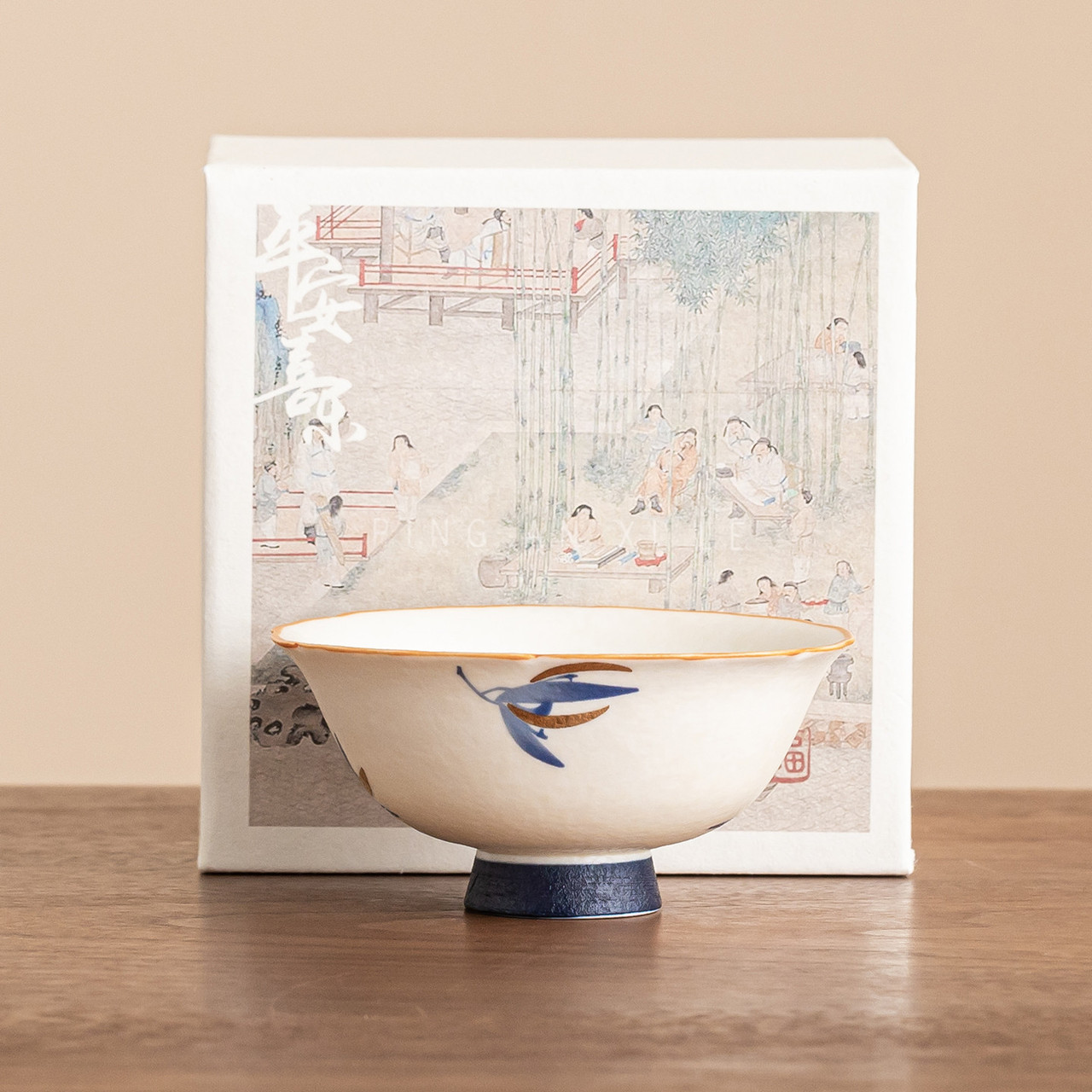 Піала «Синій Лист» виготовлена з якісної кераміки та оздоблена лаконічним візерунком у синьо-золотих тонах. Малюнок листка створює відчуття легкості та природності, додаючи чайному ритуалу спокою і гармонії.