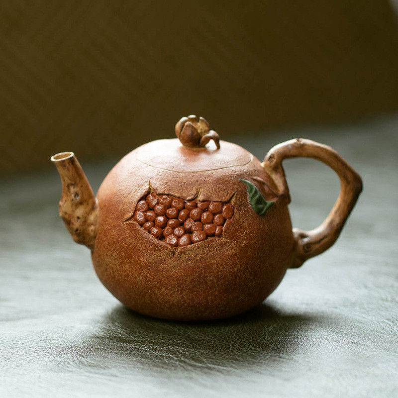 Форма граната символізує достаток, родючість та удачу у китайській культурі, а природна текстура робить кожен виріб унікальним. Чайник має зручний носик, внутрішнє ситечко та комфортну ручку з фактурою гілки.